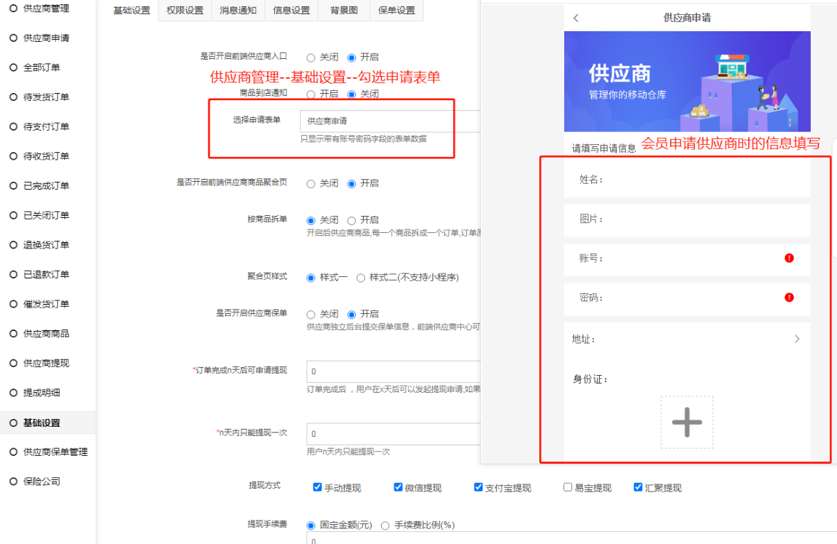 通过应用--自定义表单插件--自定义供应商表单申请信息(必须添加有‘账号’‘密码’这两信息)