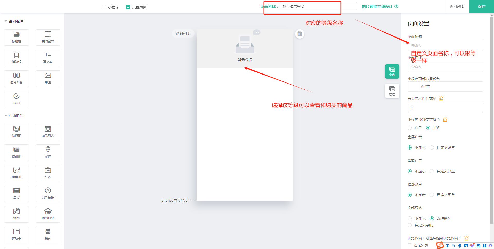 设置好页面名称-便于区分不同等级的页面,建议页面名称为会员等级的名称