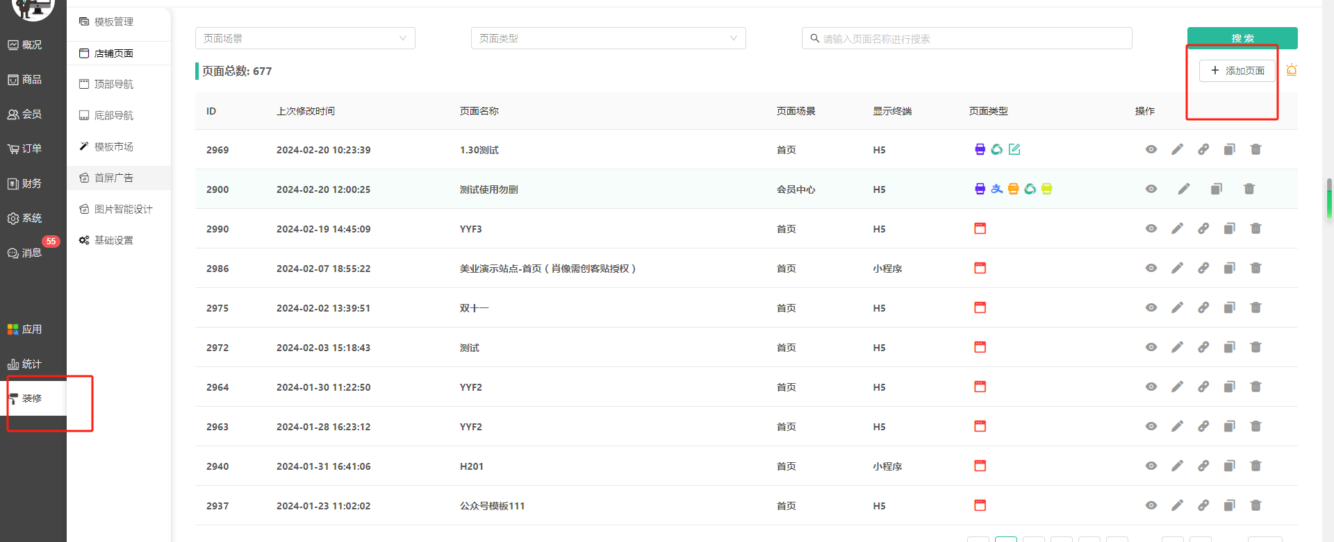 复制页面链接后点击小程序首页去编辑小程序首页